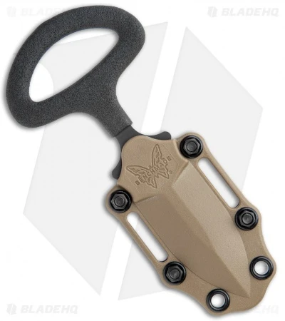 This Benchmade Adamas Push Dagger fixed blade combat knife was designed by Shane Sibert. The black finished 440 steel dagger blade has a plain cutting edge. This Benchmade fixed blade knife is perfect for thrusts and pushing. This Benchmade Adamas knife also comes with a tan molded sheath meant to be worn on your belt so you’ll never be caught without your last line of defense.